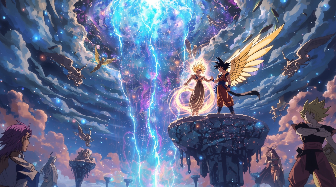 Ein gleißender Riss zog durch das schimmernde Reich, Funken uralter Macht wirbelten und die Plattformen, auf denen König Zeno saß, begannen…